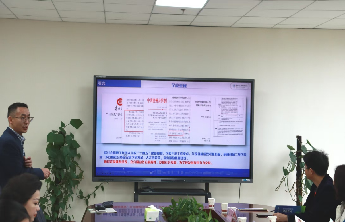 贵州大学对外合作处副处长、教育发展基金会副秘书长赵鹏介绍了贵州大学教育发展基金会基本情况。
